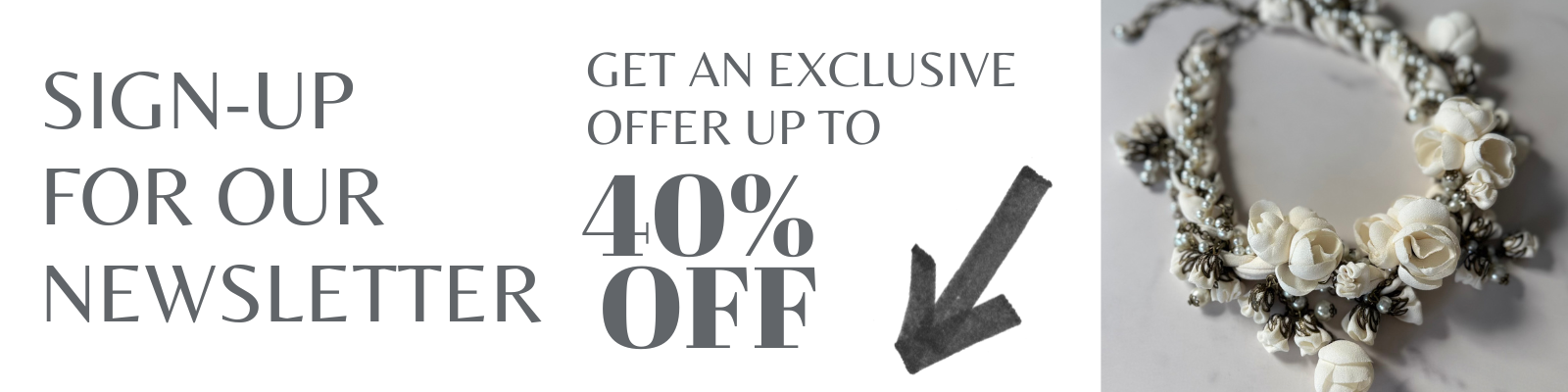 Our floral collections feature soft, 100% natural cotton and silk petals, paired with earthy bronze chains for lasting strength. Each piece is finished with freshwater cultured pearls or genuine crystals, blending delicate beauty with grounded elegance.