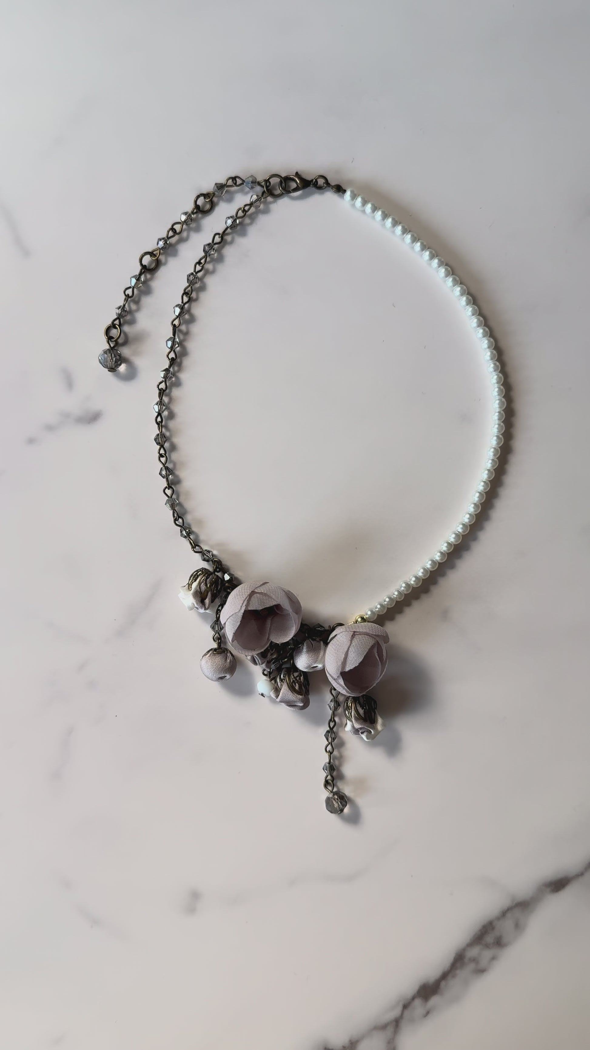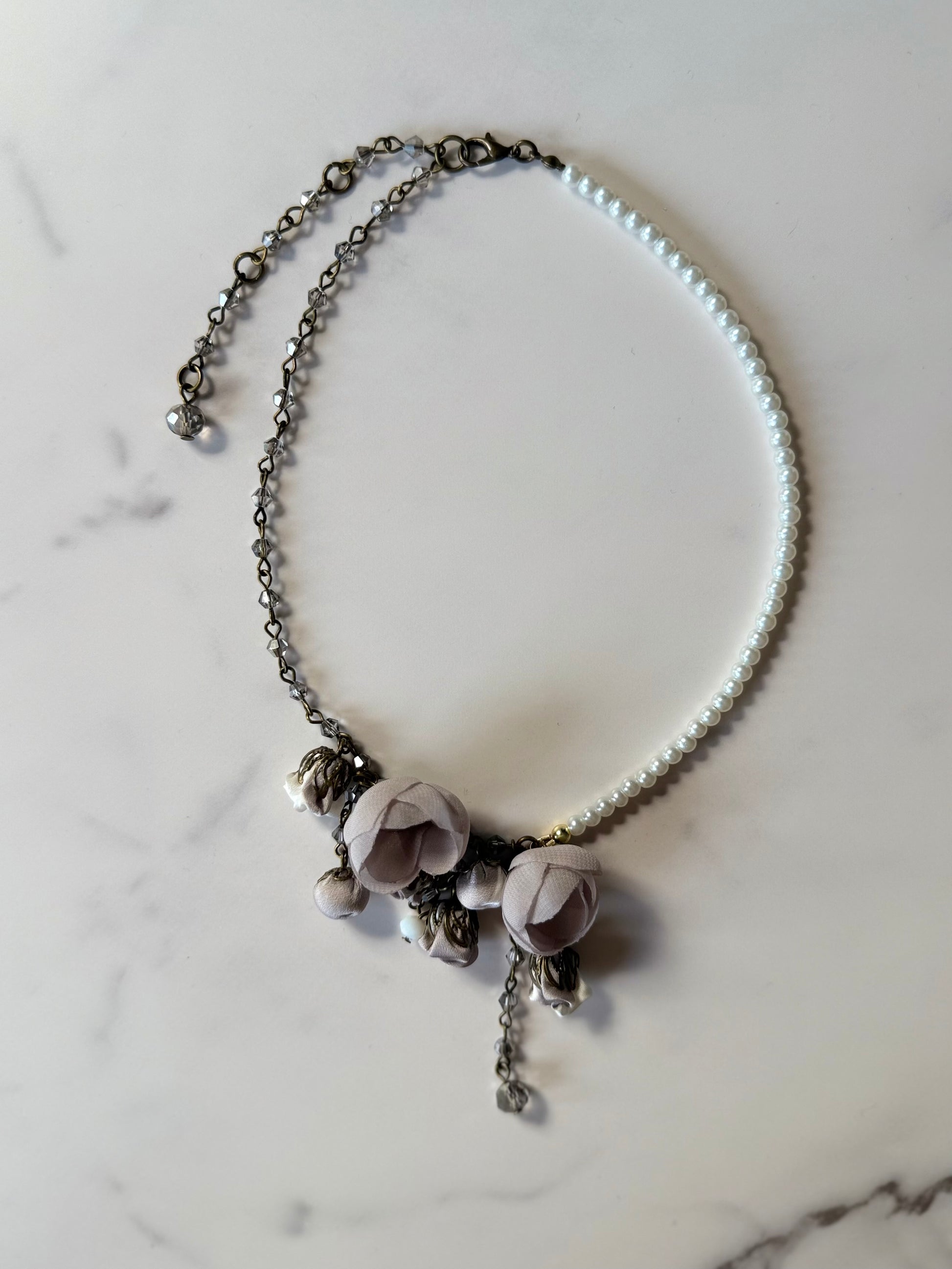 A sculptural floral statement necklace, the Boheme Necklace from our Almond Collection embodies soft strength — each cotton & silk bloom hand-woven with shiny, genuine crystals and bronze chains for timeless, poetic elegance.