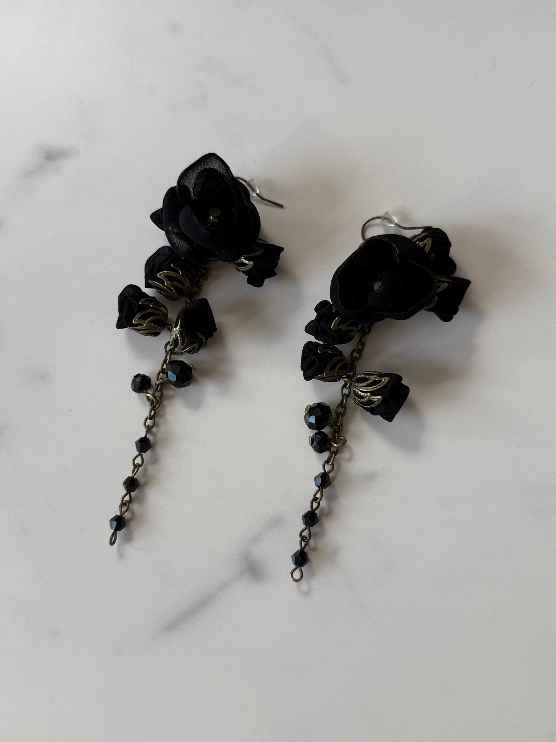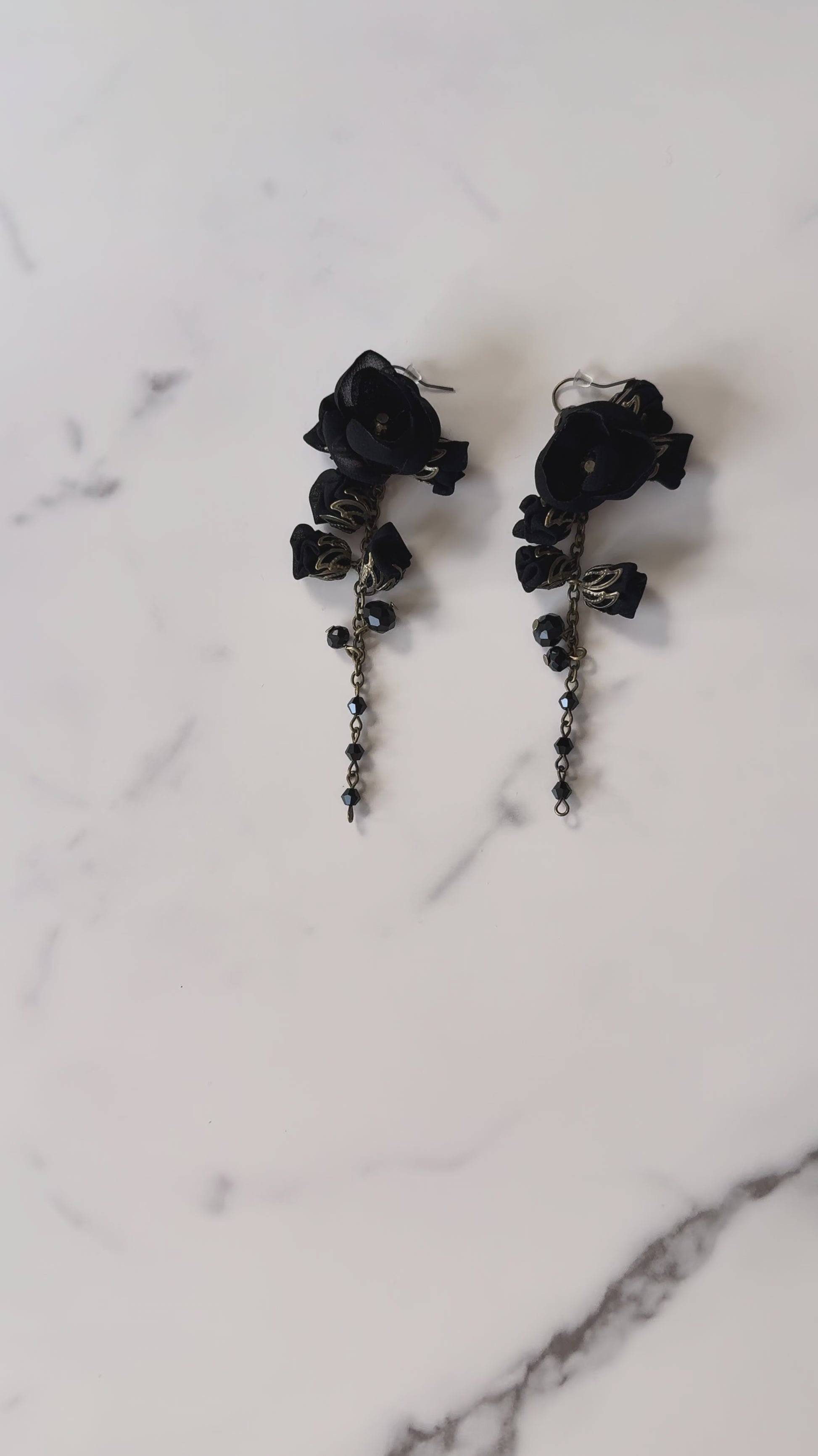 A sculptural floral statement earrings, the Vanessa earrings from our Midnight Collection embodies soft strength — each silk & cotton bloom hand-woven with shiny, genuine crystals and bronze chains for timeless, poetic elegance.