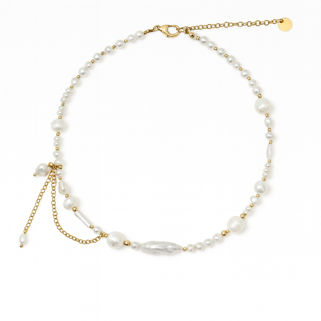 18K Gold Freshwater Pearl Baroque Chain Necklace